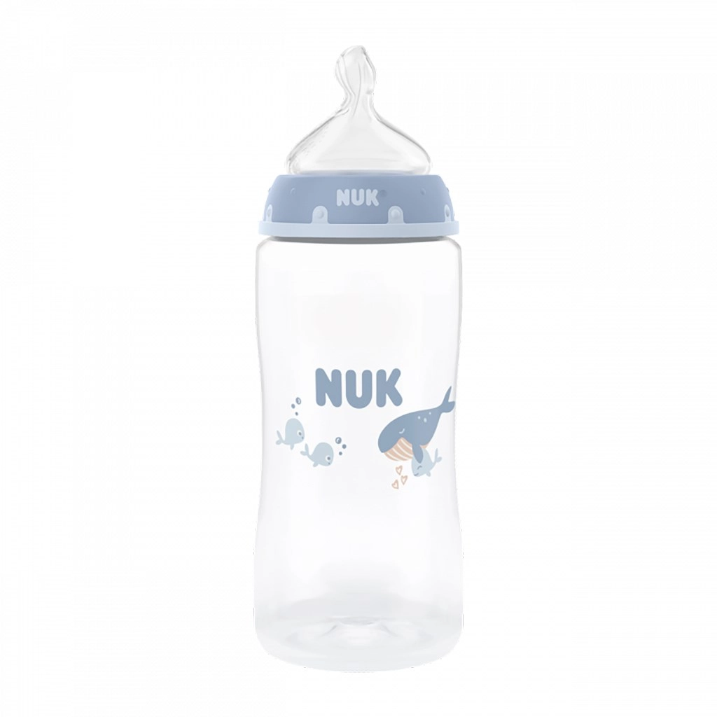 Németországban készült, minőségi, BPA‑mentes polipropilénből. A palack könnyű, tartós és kellemes fogású. A széles talp stabilitást ad, az enyhén formázott palacktest biztonságos fogást és egyszerű tisztítást tesz lehetővé. A Whale dizájn játékos megjelenést kínál, és a palack teljes mértékben kompatibilis a NUK First Choice rendszerrel a szabad kombinálhatóságért.