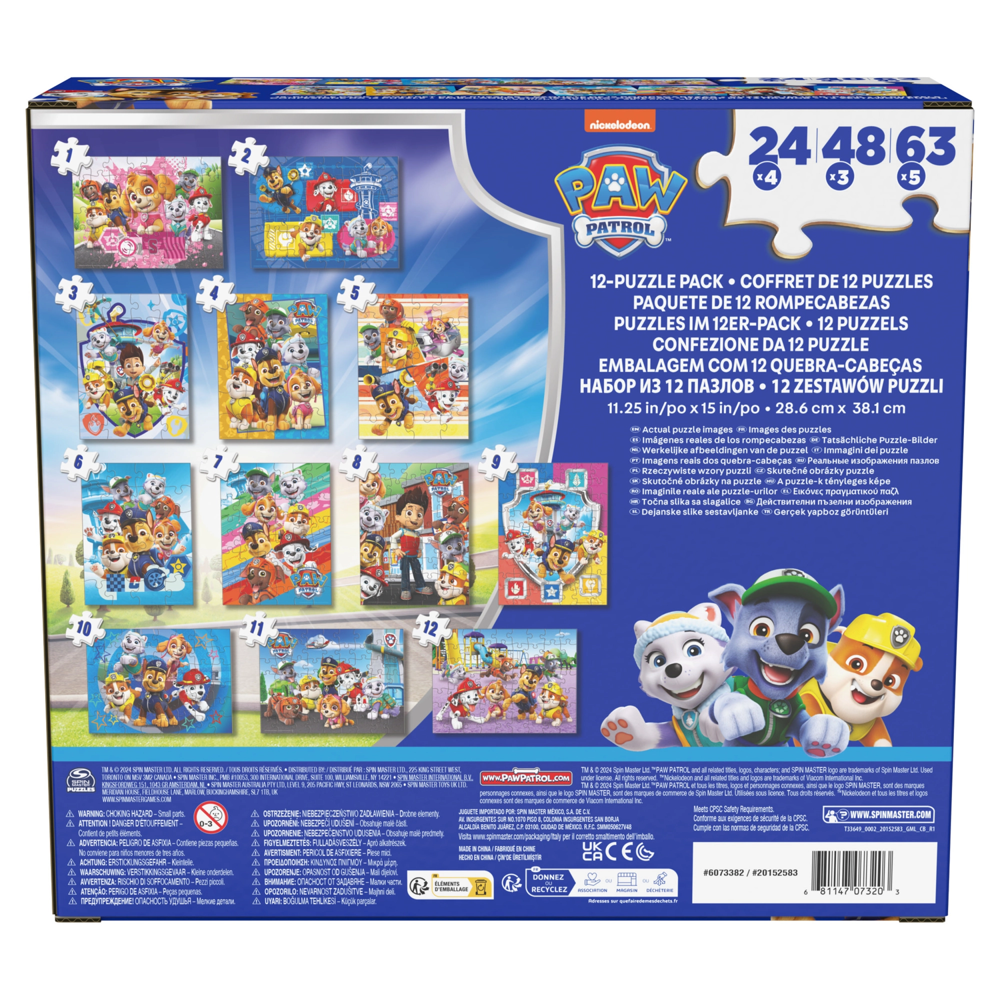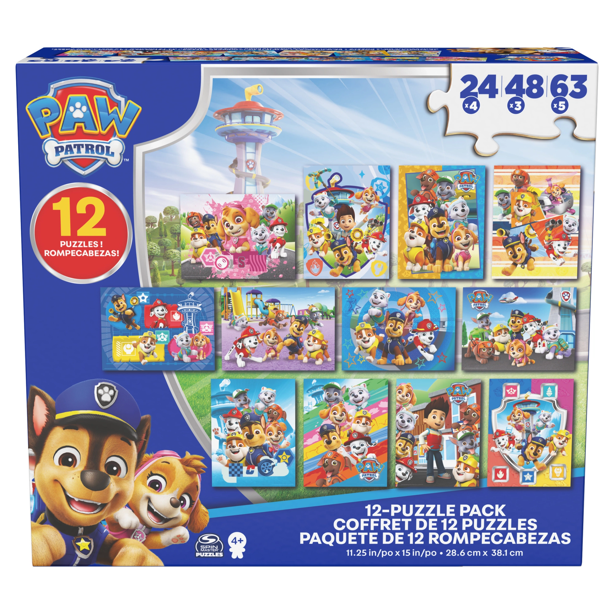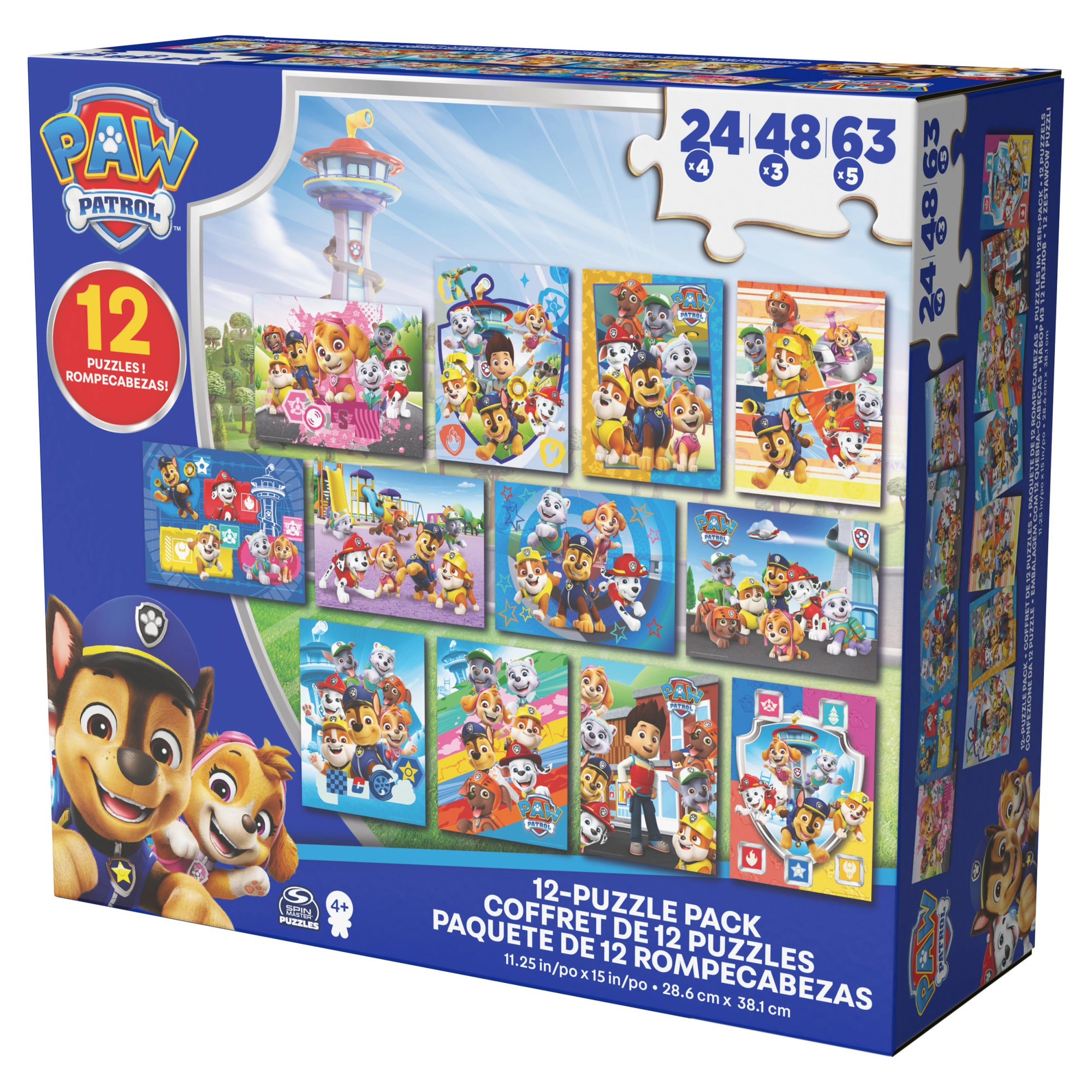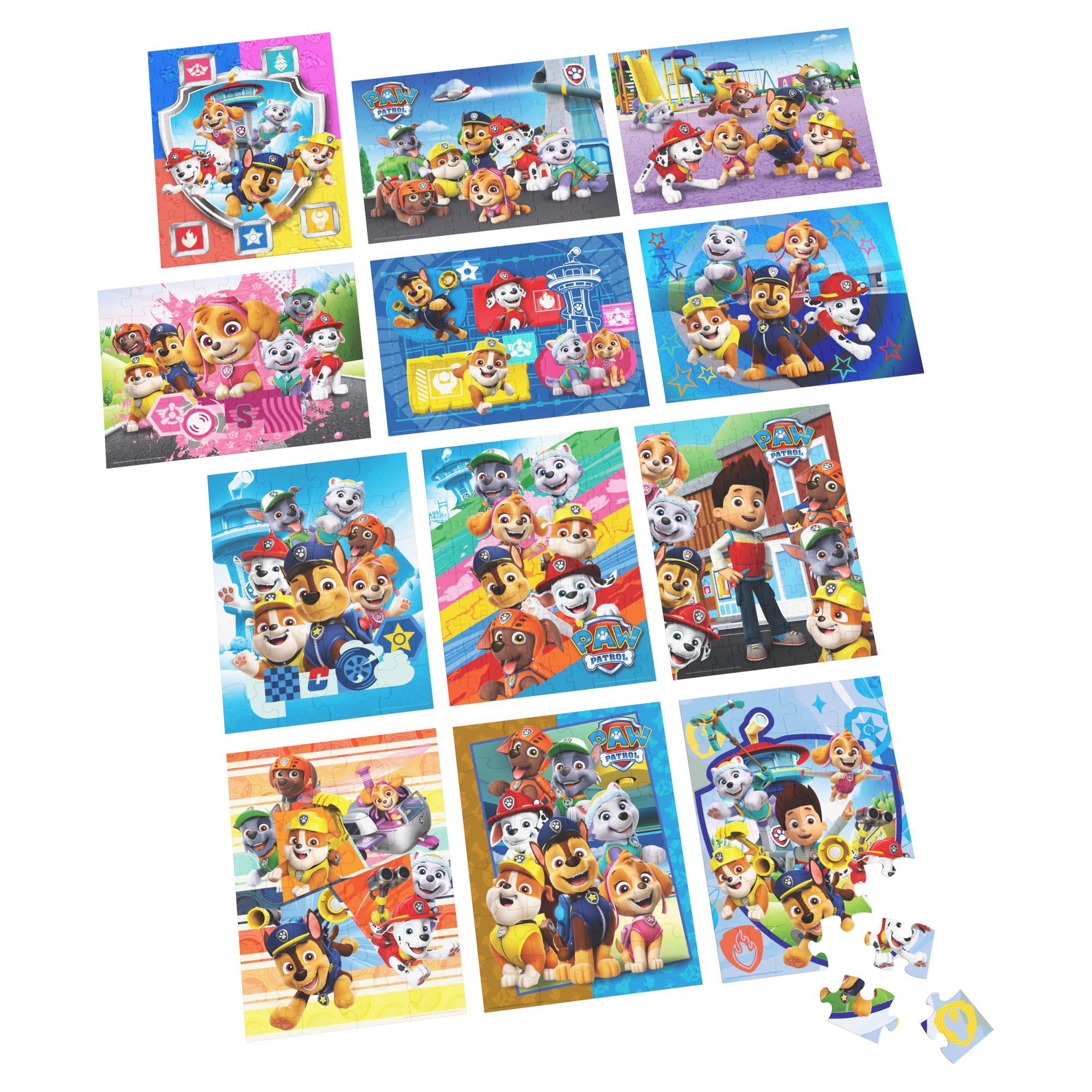 Ez a színes puzzle szett a Spin Master márkától a népszerű PAW PATROL sorozat ihletésére készült. A gyerekek kirakhatják a képeket a kölykökkel: Marshall, Rubble, Chase, Rocky, Zuma, Skye és barátaik. Minden elkészült kép mérete 38,1 × 28,5 cm, így bármelyik gyerekasztalon remekül mutat.