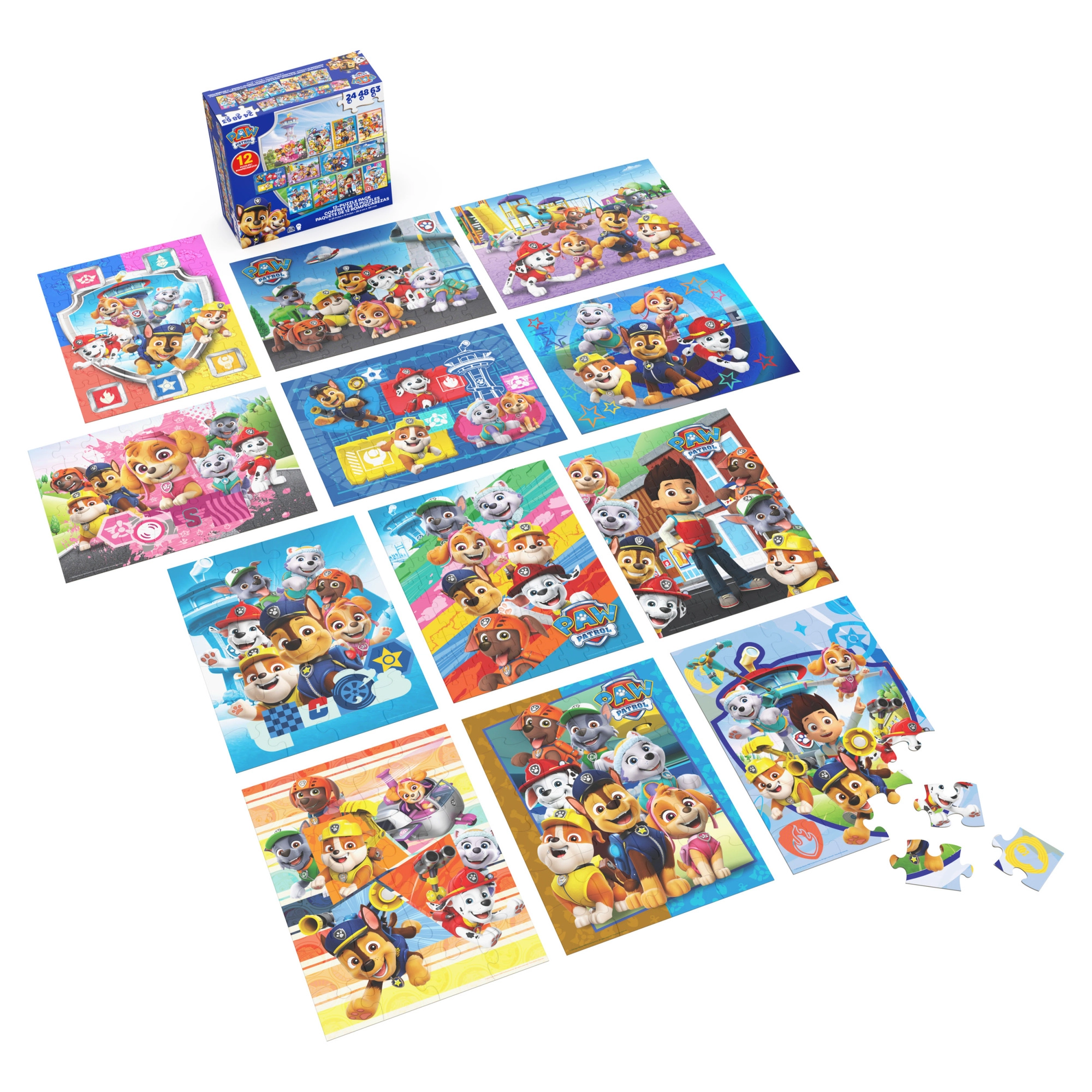 Fedezze fel a szórakozást a PAW PATROL kis rajongóinak ezzel a nagy, 12 az 1-ben szettel. 12 különböző kirakót talál színes, kedvelt hősökkel, amelyek fejlesztik a türelmet, a koncentrációt és a logikus gondolkodást. A különböző darabszámoknak köszönhetően a szett ideális a fokozatos fejlődéshez és hosszú órákon át tartó kreatív szórakozáshoz.
