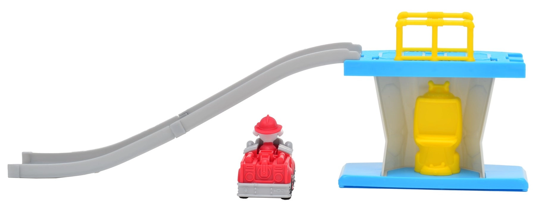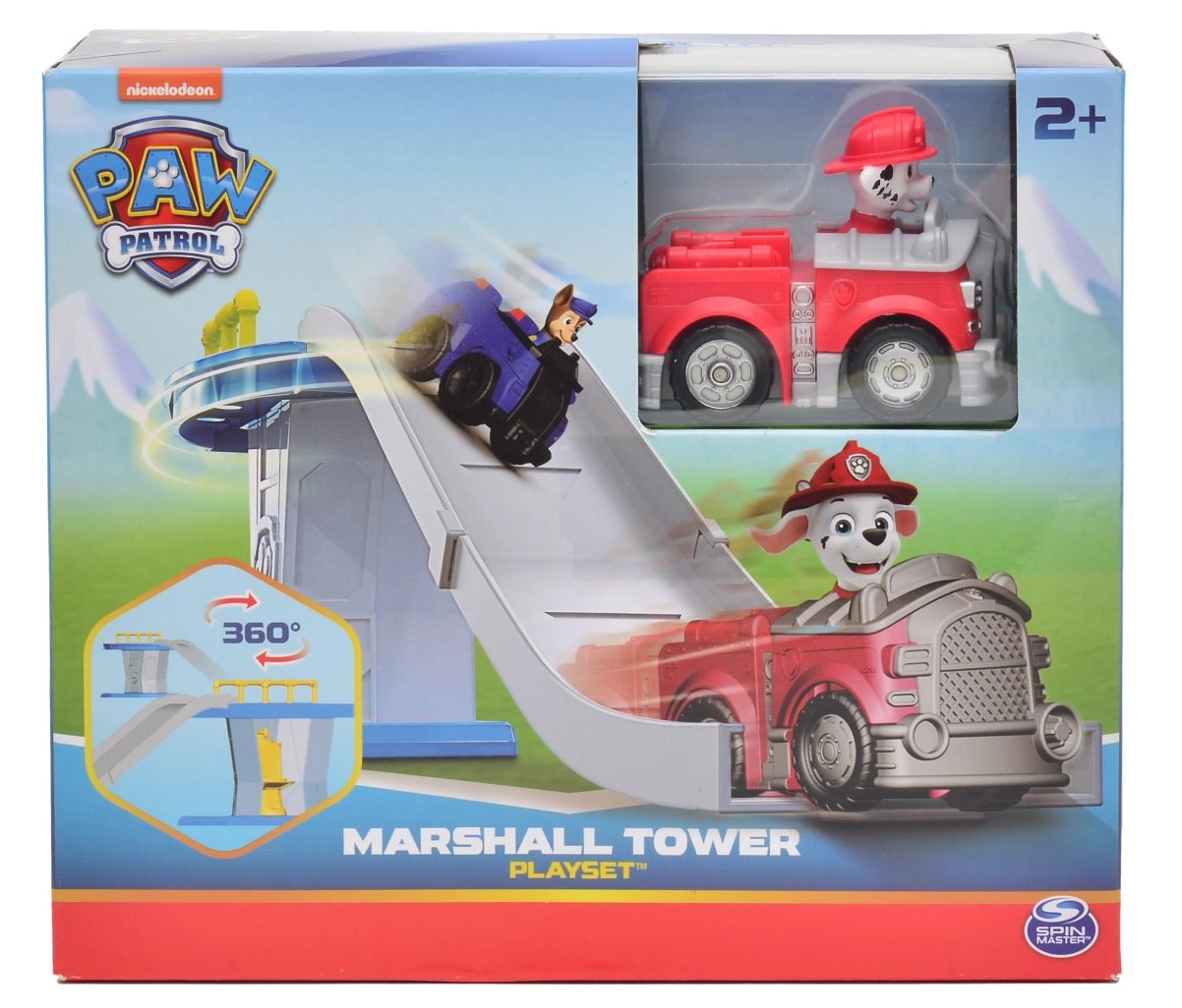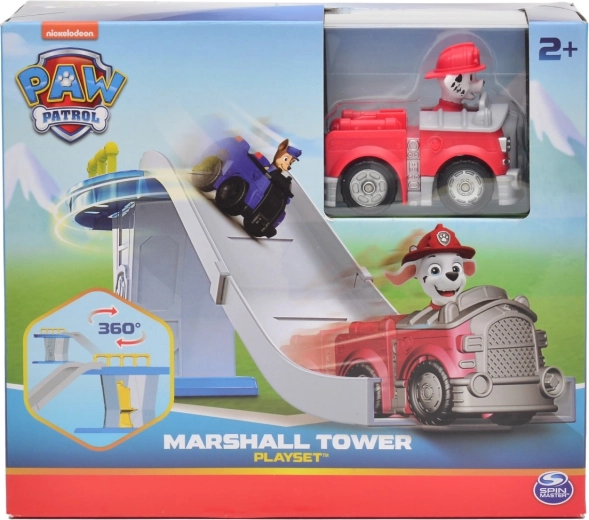 A csúszdapályás torony lehetővé teszi, hogy Marshall járműve simán lecsússzon – tökéletes a dinamikus mentési jelenetekhez és az ismételt játékhoz.