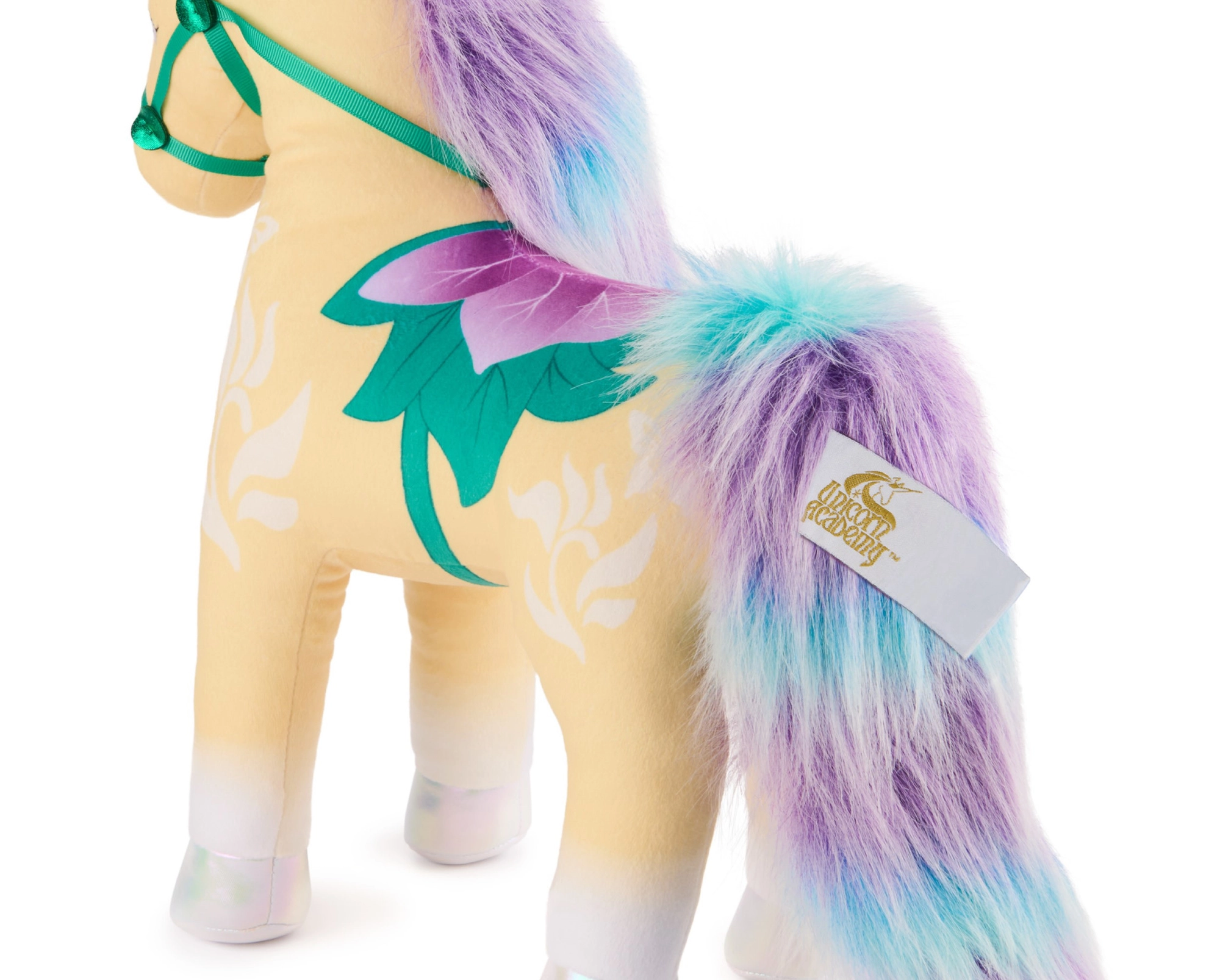 Az arany szarv, az opalizáló paták és a zöld–lila színekben pompázó botanikus nyereg kantárral hűen utalnak a Unicorn Academy világának Leaf karakterére.