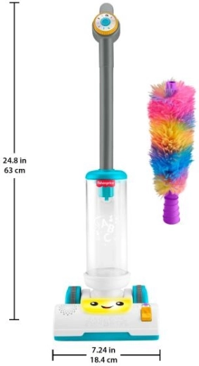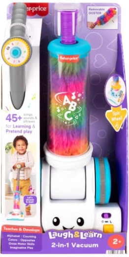 A Fisher-Price játékos, 2 az 1-ben gyerek porszívója fény- és hangeffektekkel, kivehető kefével és 2 tanulási móddal érkezik, több mint 45 dallal, hanggal és kifejezéssel. Támogatja a finom- és nagymozgások fejlődését, tanítja a ábécét, színeket, a 1–10-ig számolást, valamint egyszerű ellentétpárokat, és motiválja a gyerekeket az aktív, felnőtteket utánzó játékra.