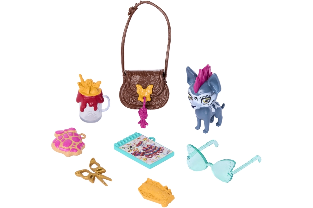 A szett része a bájos Candelita kedvenc és hat tematikus kiegészítő – például táska, napszemüveg, jegyzetfüzet vagy ital. Ezekkel a gyerekek fejleszthetik képzeletüket, kombinálhatják az outfiteket és Monster High iskolai történeteket alkothatnak.