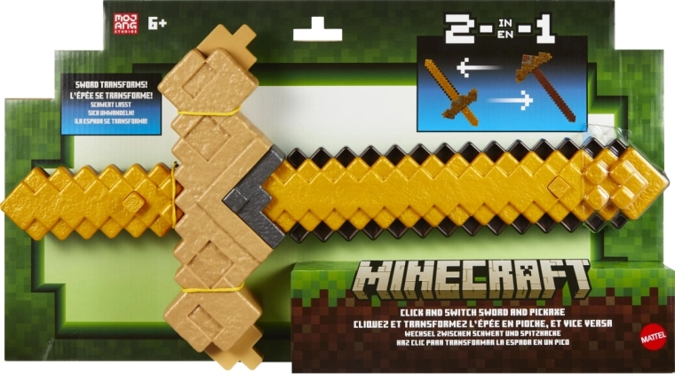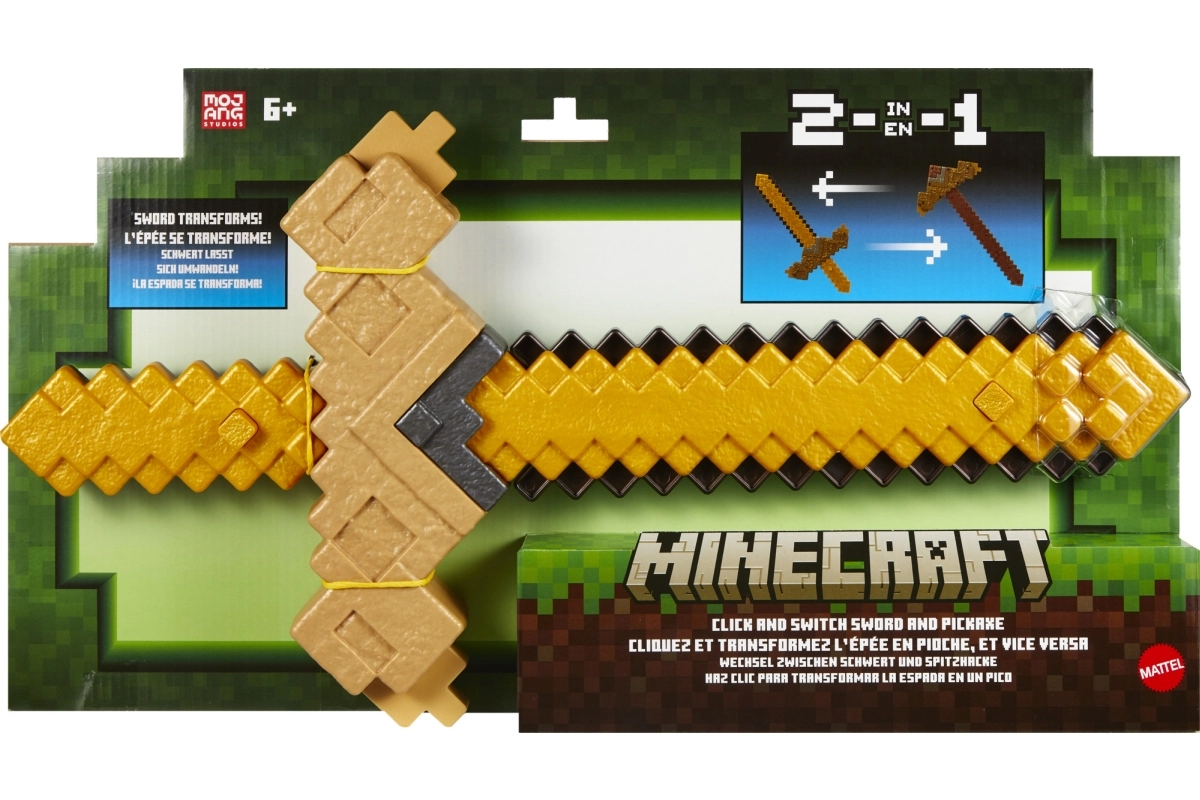 Vidd át a Minecraft világát a valóságba ezzel a 2 az 1-ben játékkal, amely egyetlen gombnyomással csákányból karddá, majd vissza alakul. Az ergonomikus kialakítás jól illeszkedik a gyerekek kezébe, és lehetővé teszi a biztonságos, kreatív játékot, amelyet kedvenc játékbeli pillanatok inspirálnak. Ajánlott 6 éves kortól.