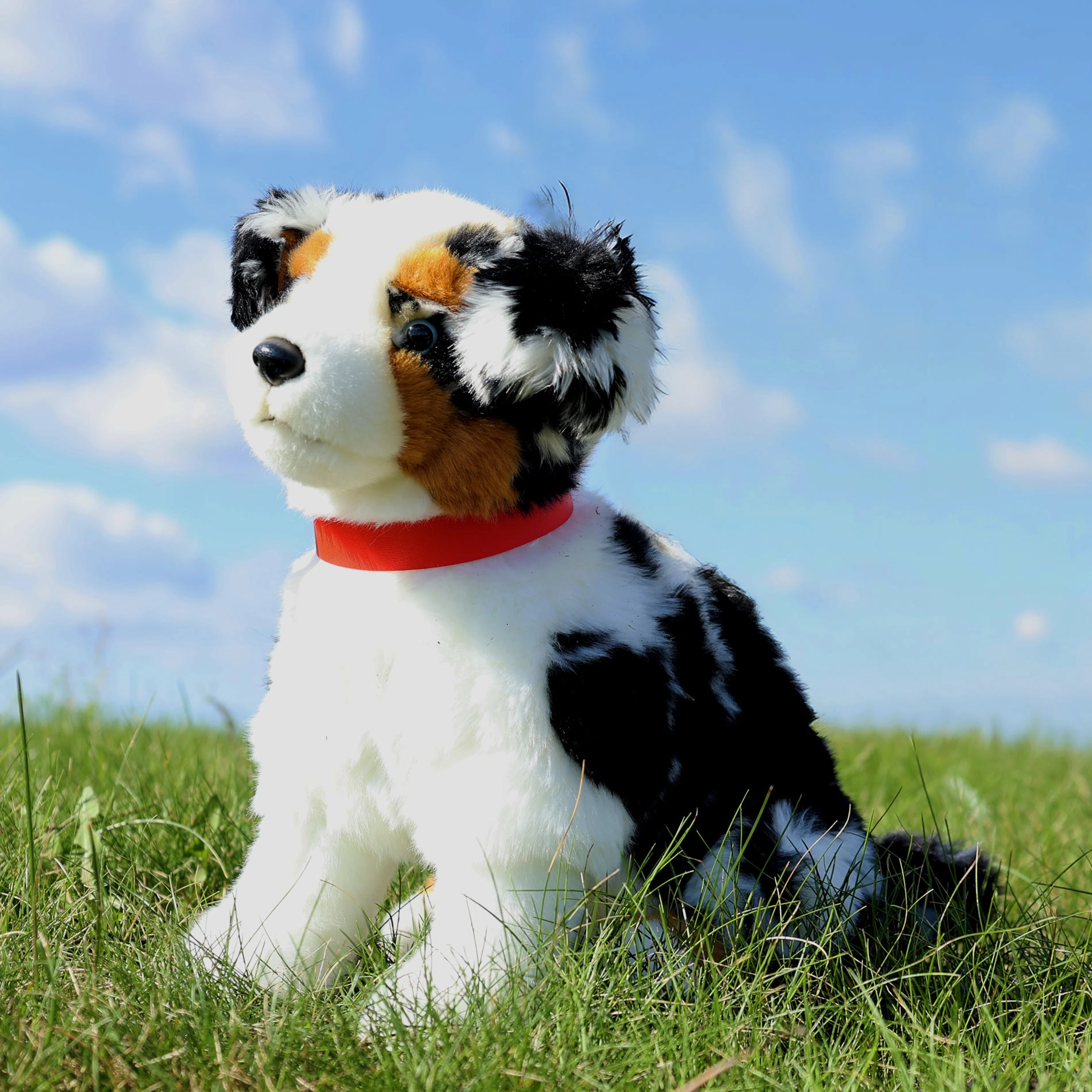 Fedezze fel a plüss kutyát – ausztrál juhászkutyát valósághű kivitelben, puha bundával, bájos fülecskékkel és kontrasztos foltokkal. Gondos kézi varrásának és minőségi anyagainak köszönhetően élethű hatást kelt, és kész, hogy hű társ legyen játékhoz, ölelgetéshez és dekorációhoz.