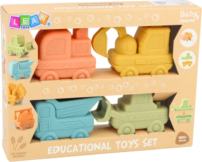 A 4 darab aranyos, puha gumijárműből álló készlet biztonságos szórakozást nyújt otthon és vízben egyaránt. A játékok két részre szétválaszthatók, puha és rugalmas gumiból készülnek a könnyű fogásért, és vízspriccelő funkcióval rendelkeznek a vidám fürdéshez. Ideális a finommotorika, a kéz–szem koordináció és az érzékelés fejlesztéséhez.