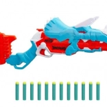 A break-open mechanizmusnak köszönhetően a töltés gyerekjáték. Csak nyomd meg a dinoszaurusz fején található szarvat, és a nyílhegyek kamrája kész a három szivacslőszerhez.