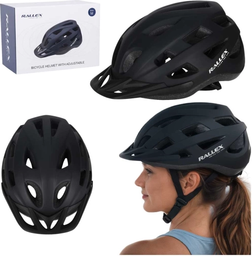 Rallex kerékpáros sisak, állítható, fekete, M méret (54–58 cm)