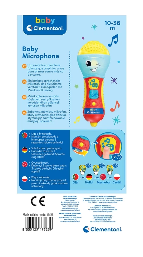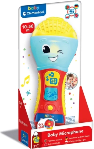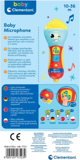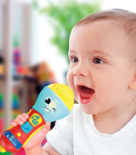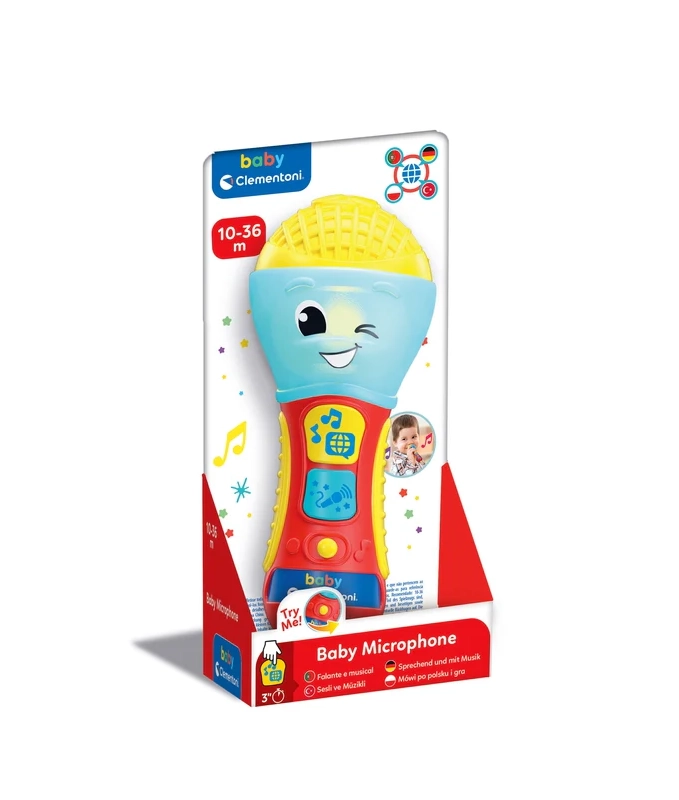 A CLEMENTONI beszélő gyermek mikrofon nagyszerű interaktív játék kis énekeseknek. Dalok, háttérzene és egyszerű kifejezések segítségével tanítja az első betűket és új szavakat 4 nyelven. A színes LED dióda és a 2 funkciógomb látványos fényshow-ról és szórakoztató effektekről gondoskodik.