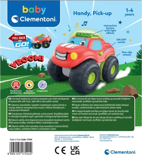 Ez a kedves pick-up mosolygós elejével minden kis sofőrt megörvendeztet. A pull-back mechanikus meghajtásnak köszönhetően elég hátrahúzni és elengedni az autót – előreindul, és ösztönzi a mozgás örömét és a kíváncsiságot. A fénycsík és a valósághű hangok igazi autózás hangulatát adják a játéknak.
