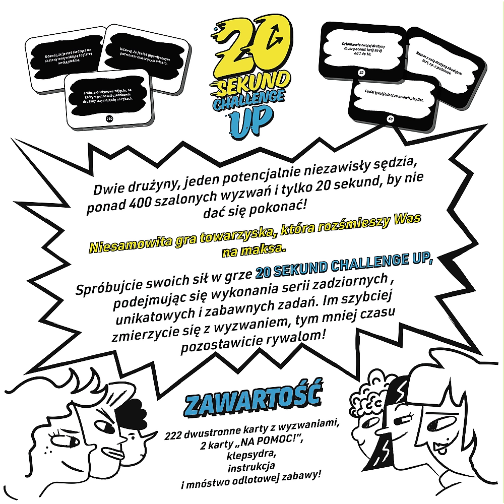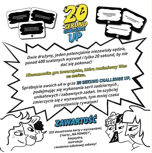A gyors és szórakoztató 20 másodperces kihívás: Új leosztás partijáték a TREFL-től próbára teszi a reflexeket, a kreativitást, és garantálja a rengeteg nevetést. A feladat teljesítésére mindössze 20 másodperc áll rendelkezésre – ideális választás bulikra, családi estékhez és baráti összejövetelekre.