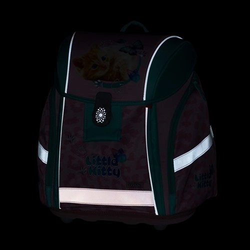 A „Little Kitty” motívummal készült prémium iskolai szett a mindennapi, kényelmes és biztonságos hordásra készült. Az ultrakönnyű táskaváz (csak 970 g) az anatómiailag formázott hátlappal és a széles pántokkal egyenletesen osztja el a terhet. A mellhevedernek és a húzópántoknak köszönhetően a táska tökéletesen ül és nem csúszik le a vállról. A gyerekek biztonságát fényvisszaverő elemek növelik, amelyek minden irányból láthatók.