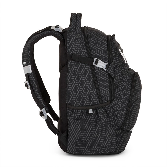 A két tágas fő rekesz könnyedén elnyeli a füzeteket, tankönyveket és a tolltartót, az elülső zsebben pedig elfér egy kisebb uzsonna vagy apróságok. A gumírozott oldalsó hálós zsebek ideálisak a kulacsnak, így a diák mindig kéznél tartja az innivalót. A merev alsó rész lehetővé teszi, hogy a táska stabilan álljon és ne boruljon fel, míg a fényvisszaverő elemek növelik a láthatóságot és a biztonságot szürkületben.