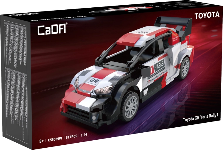A CaDA építőkészlet elhozza a sportautót, a TOYOTA GR YARIS RALLY1-et agresszív sziluettel, versenymatricákkal és aerodinamikai részletekkel. A 317 elemnek köszönhetően kellemes modellezési élményt nyújt, és elkészítés után egy mutatós modellt kapsz, amely kiállításhoz és könnyed asztali játékhoz is alkalmas.