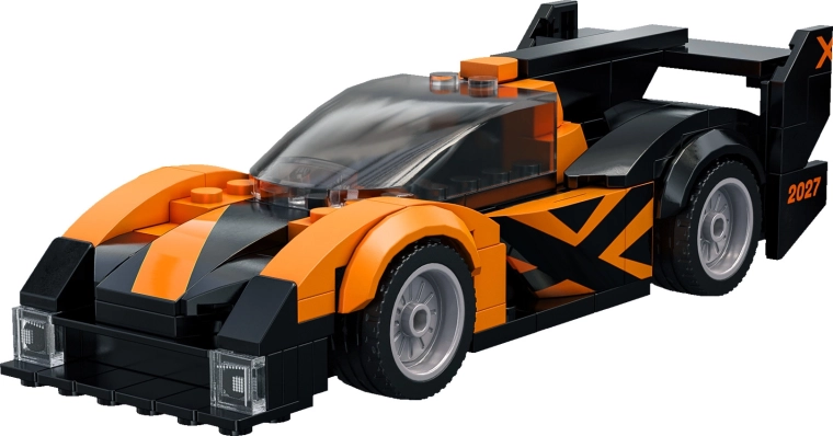 Narancs-fekete színvilág, markáns hátsó szárny és átlátszó kabin adnak a modellnek autentikus versenyautós megjelenést, játékhoz és kiállításhoz egyaránt.