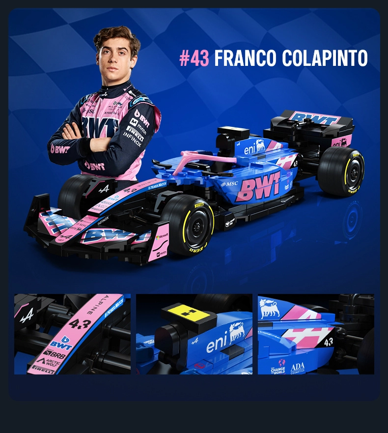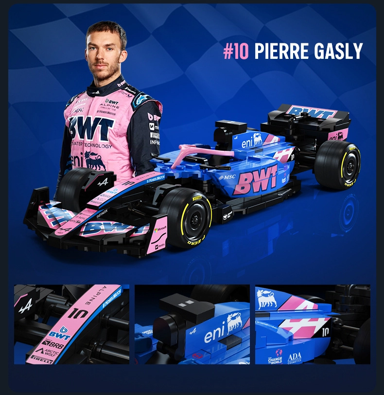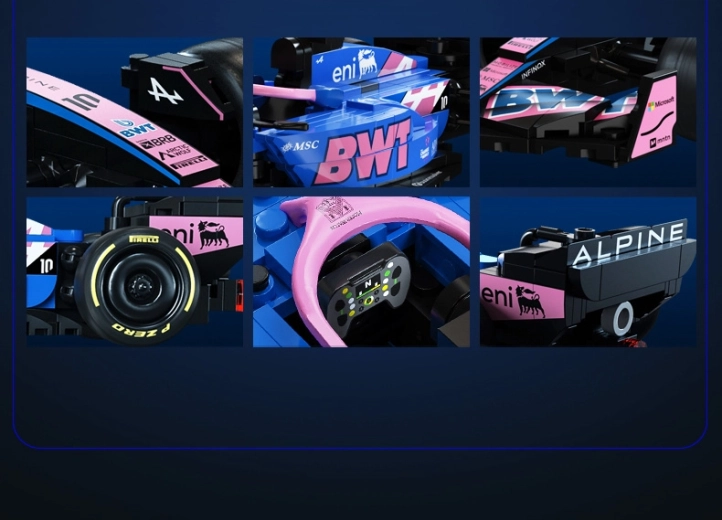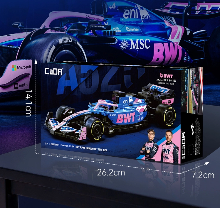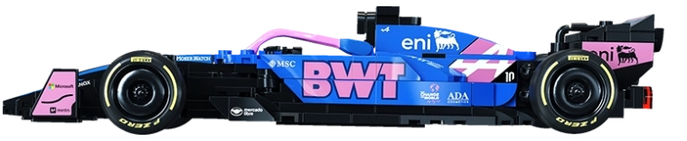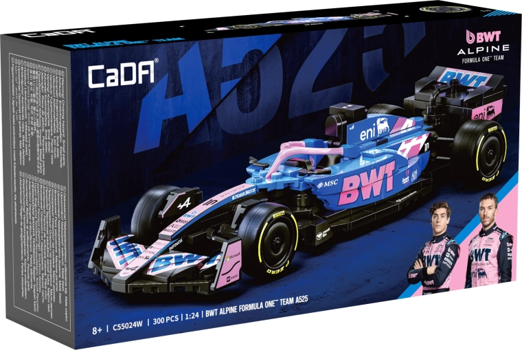 Ez a dizájnos CaDA építőkészlet hűen adja vissza a BWT ALPINE F1 A525 agresszív sziluettjét és markáns színeit. A gazdag részleteknek, az elemekre nyomtatott mintáknak és az átgondolt felépítésnek köszönhetően ideális stílusos vitrindarabnak és kreatív játékhoz inspirációként is.