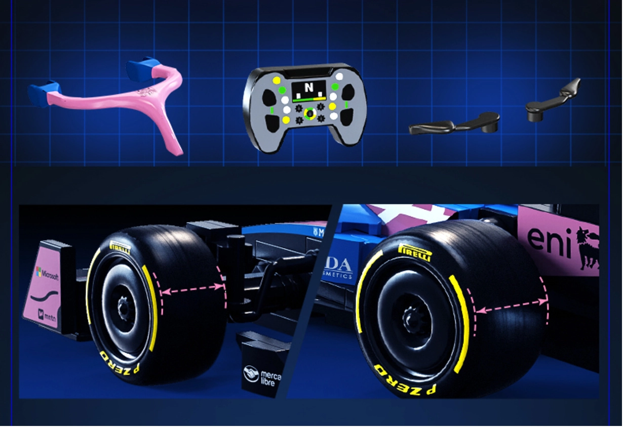 Hű arányok és aerodinamikai elemek, beleértve az első és hátsó szárnyat, nyomatokat és a Halo rendszerrel felszerelt cockpitot a maximális hitelességért.