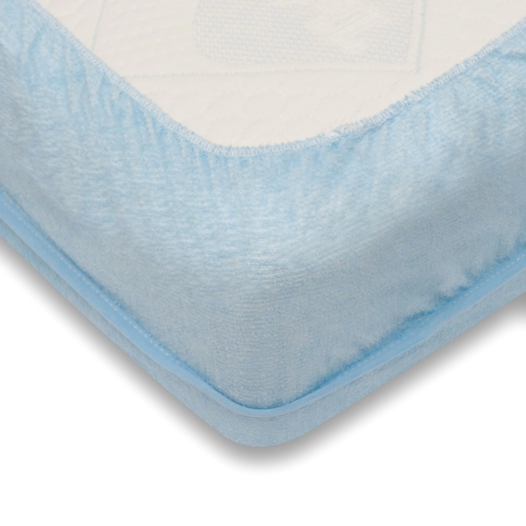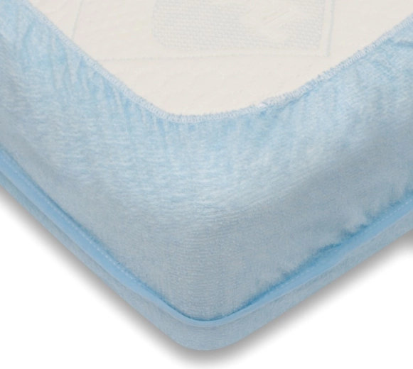 A világoskék vízálló frottír lepedő remek választás a kényelemhez és a higiéniához a gyermekágyban. A puha, pamut frottír felület kellemes tapintású, míg az alsó védőréteg hatékonyan megakadályozza a folyadékok átszivárgását, és védi a matracot a szennyeződésektől.