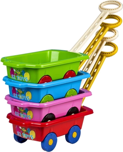 A kocsi minőségi, egészségre ártalmatlan műanyagból készült, amely kopásálló, ugyanakkor könnyű, így a gyerekek egyszerűen húzhatják.