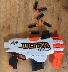 Élvezd a dinamikus szórakozást a NERF Ultra AMP blasterrel, amely ötvözi a motoros hajtást a gyors lövéshez, az ergonomikus markolatot a biztos fogáshoz és az integrált irányzékot a jobb pontosságért. A kompakt kialakítás megkönnyíti a kezelést gyerekeknek és felnőtteknek egyaránt.