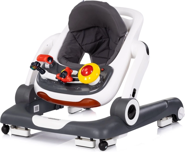 Fedezze fel a multifunkciós 4 az 1-ben bébikompot, a CHIPOLINO Little Explorer modellt elegáns szürke színben. Támogatja az első lépéseket, fejleszti az egyensúlyt és a koordinációt, és a interaktív játékpanelnek köszönhetően fényekkel, gombokkal és játékokkal motivál a mozgásra és a játékra. Állítható magasság, csúszásgátló betétek, ütközők és a kerekek sebességszabályzása gondoskodnak a mindennapi biztonságos és kényelmes használatról.