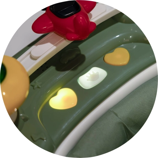 Színes gombok, fényhatások és mozgó játékok fejlesztik az érzékszerveket és a finommotorikát, miközben egész nap lekötik a gyermeket.