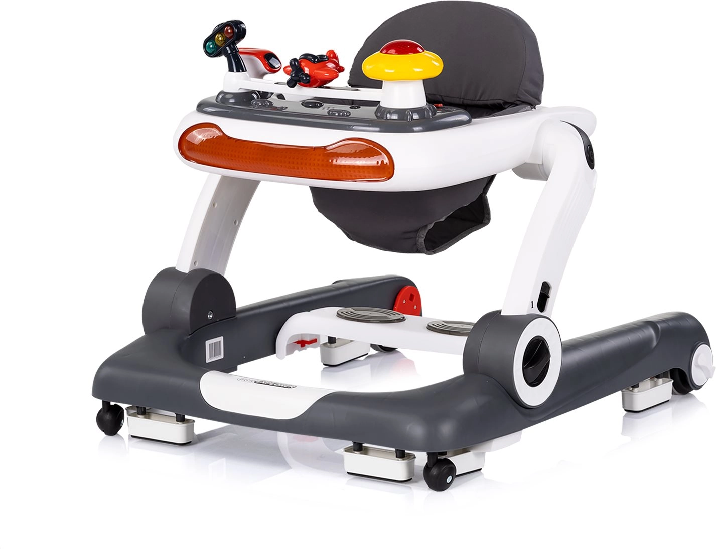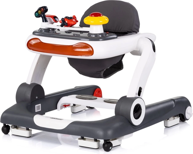 A CHIPOLINO Little Explorer praktikus és szórakoztató bébikomp, amely együtt nő gyermekével. A 4 az 1-ben kialakításnak köszönhetően kínál járóka üzemmódot, játékcentrumot, kíméletes ugráló módot az izmok erősítésére, valamint tologató/kis kocsi funkciót az önálló járás támogatására. Az interaktív panel fényekkel, zenegombokkal és mozgó játékokkal ösztönzi az érzékelést és fejleszti a finommotorikát.