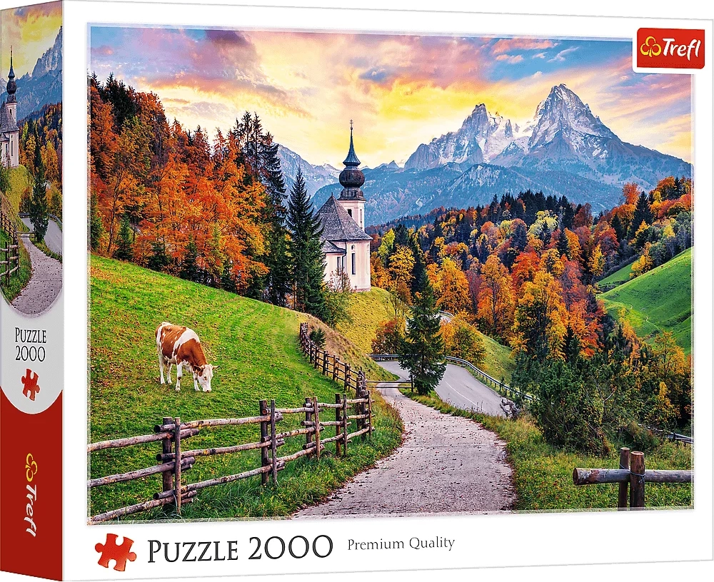 Fedezze fel a kirakás örömét ezzel a nagyformátumú puzzle-lel, amely a festői Bajorországba repíti Önt. A meleg őszi tónusok, a fa kerítések és a havas hegycsúcsok harmonikus képet alkotnak kiváló színmélységgel és kontraszttal. A precíz vágásnak köszönhetően a darabok megbízhatóan illeszkednek, a kirakás folyamatos és kielégítő élmény.