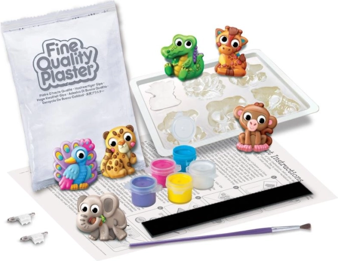 Ez a kreatív készlet a gipszöntést és a festést ötvözi egy játékos projektben, amely fejleszti a finommotorikát, a türelmet és a képzelőerőt. A csomag tartalma: állatka formák, gipsz, ecset, festékek és mágnesek a dekorációk egyszerű befejezéséhez.