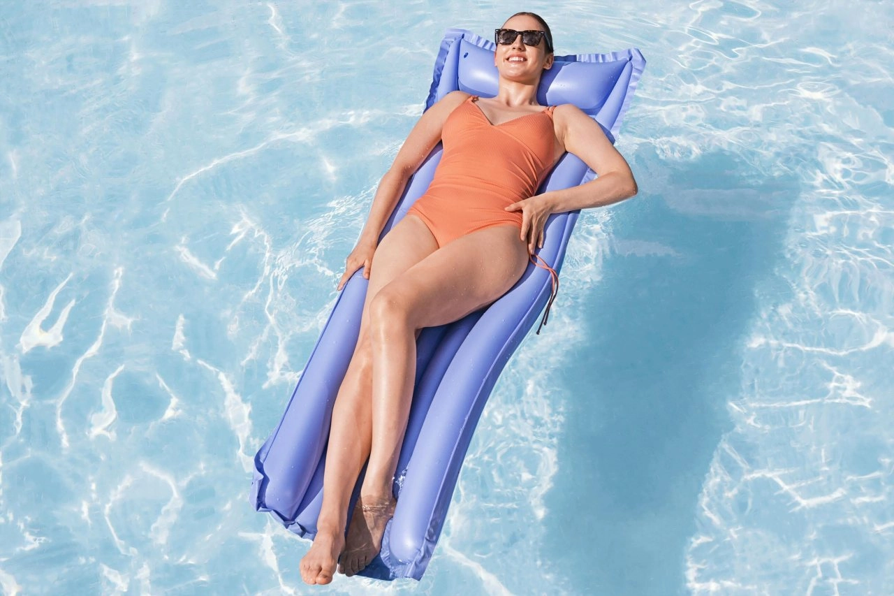 Az emelt fejtámasz természetes nyaktámaszt nyújt, és kellemes pihenést biztosít úszás vagy napozás közben.