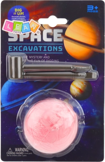 A morzsolódó gipszblokk benedvesítés után könnyen megmunkálható, és lehetővé teszi a gyerekeknek, hogy biztonságosan felfedezzék a rejtett űrbéli elemet.