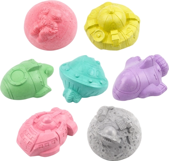 Remek ajándék űrrajongóknak – tematikus formák, pasztellszínek és biztonságos, morzsolódó anyag garantálják a vonzó és tiszta játékot. Befejezés után elég a leletet vízzel leöblíteni, és máris kész a kiállításra vagy további játékra.