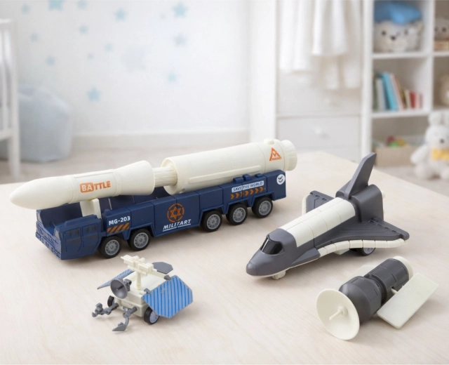 • Teljes felszerelés küldetésekhez: rakéta, űrrepülőgép, műhold és szervizjármű.