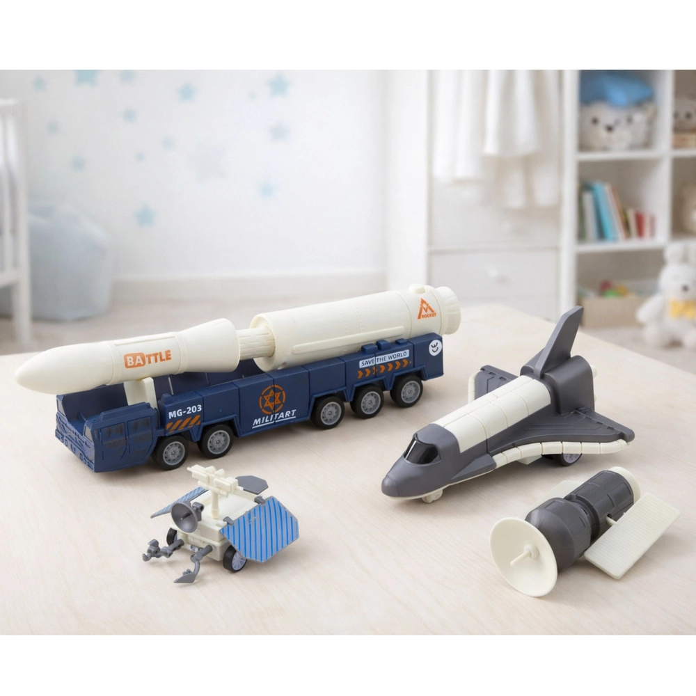 A modellek tökéletesen összeillenek: szállítás, indítás, repülés és a műhold pályára állítása. A gyerekek felváltva lehetnek űrhajósok, mérnökök és küldetésirányítók.