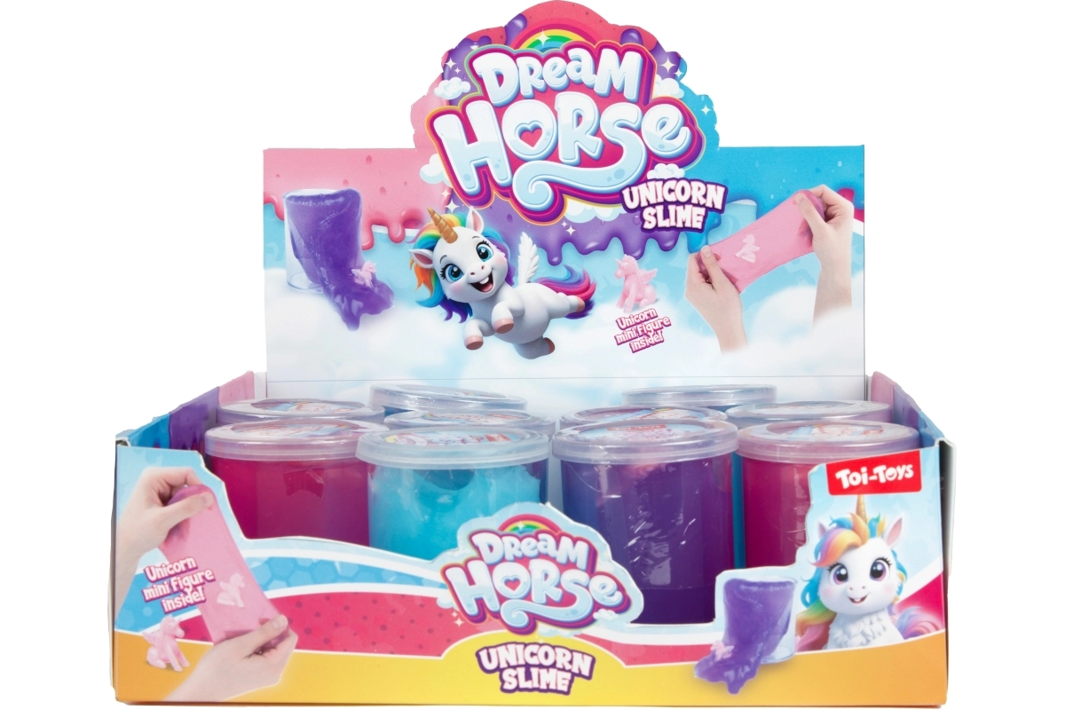 A Toi-Toys unikornisos slime órákon át tartó kreatív szórakozást nyújt a gyerekeknek. Az átlátszó, fényes slime belsejében egy kis unikornis figura rejtőzik, amely felfedezésre vár. Kellemes, rugalmas állagának köszönhetően ideális szorításhoz, nyújtáshoz és gyúráshoz – segít oldani a feszültséget és támogatja az érzékszervi észlelést.