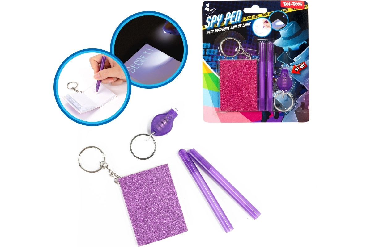 Ez a kémkészlet kalanddá varázsolja a mindennapi írást. Amit a varázstollal írsz, láthatatlan marad, és csak a mellékelt UV zseblámpával fedhető fel. A gyerekek biztonságosan elrejthetik titkos üzeneteiket, ötleteiket és történeteiket a praktikus, klipszes naplóban.