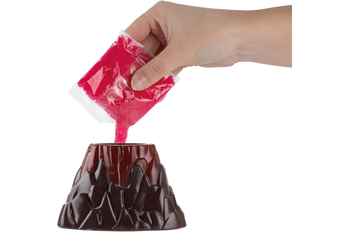 - Szórd a teljes tasak tartalmát a vulkánba, töltsd fel vízzel a peremig, figyeld a kitörést