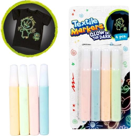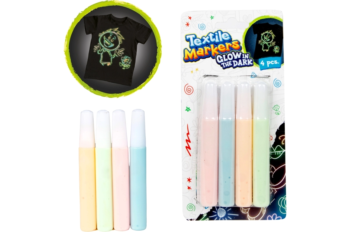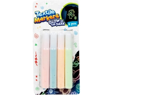 Készíts eredeti mintákat pólókra, táskákra és más textíliákra ezzel a négy darabos textilfilc-készlettel, amelyek sötétben világítanak. A pasztell/neon árnyalatok könnyen felvihetők, és ragyogó motívumokat adnak, amelyek a lámpák lekapcsolása után is láthatók. Ideális 3 éves kortól gyerekekkel való alkotáshoz és felnőttek kreatív projektjeihez.