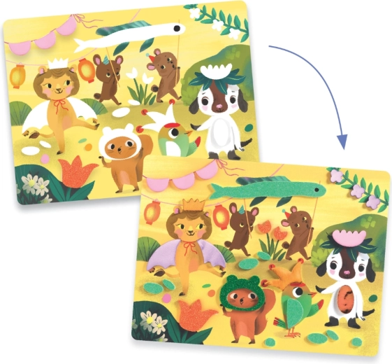 Fedezd fel a DJECO szórakoztató kreatív készletét, amellyel a gyerekek csillogó képeket készíthetnek habszivacs matricákból. A készlet fejleszti a finommotorikát, a kreativitást és a türelmet – csak le kell húzni, felragasztani, és az állatos kép életre kel ragyogó részletekkel.