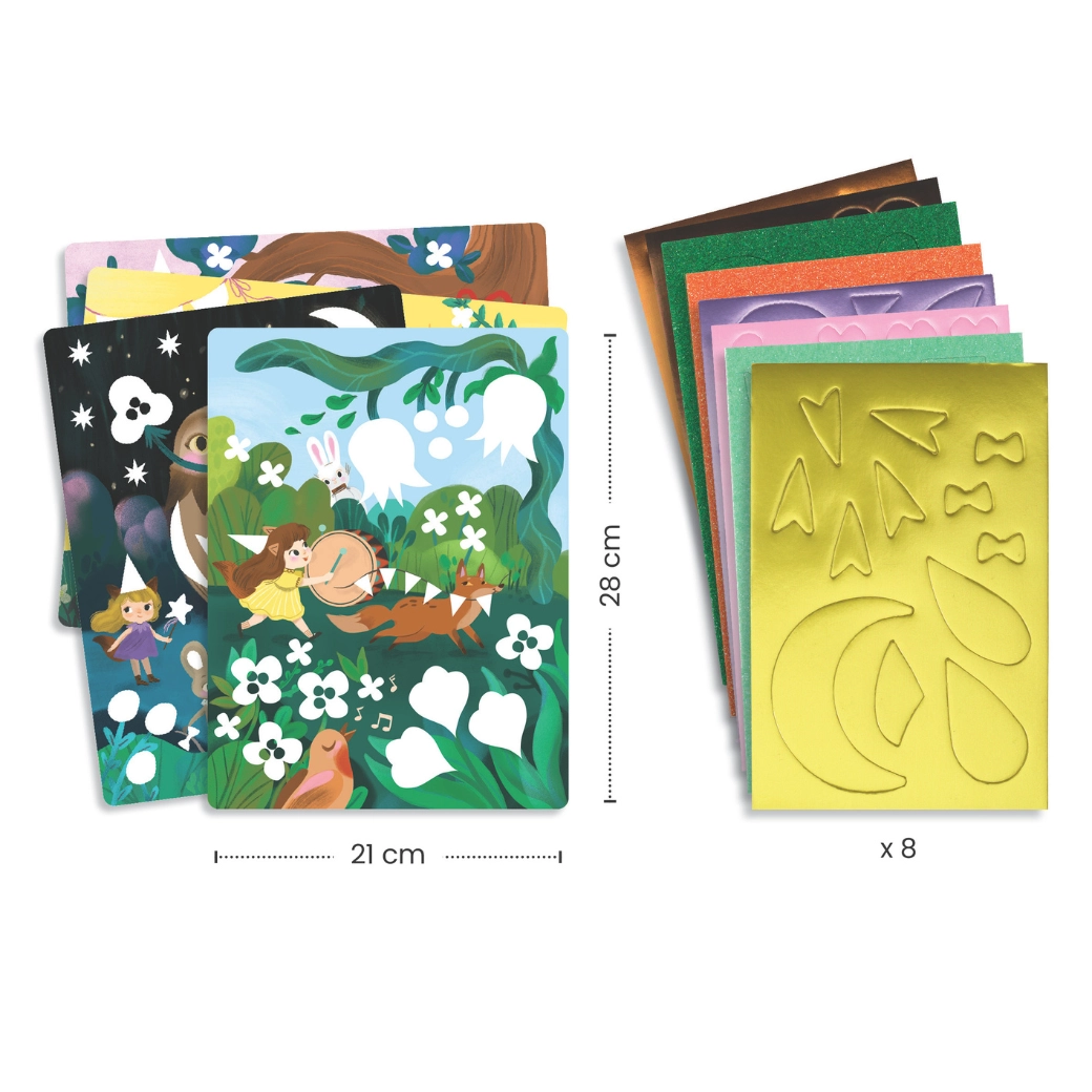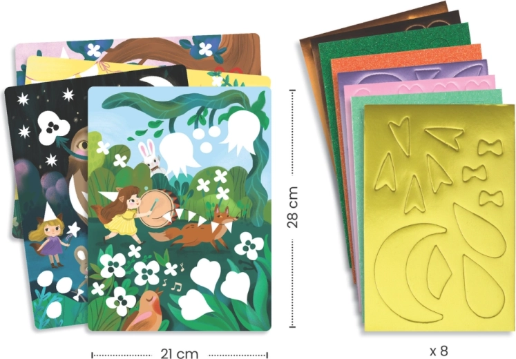 - Illusztrált kartonalapok, öntapadós habelemek (beleértve a csillámosakat is), útmutató