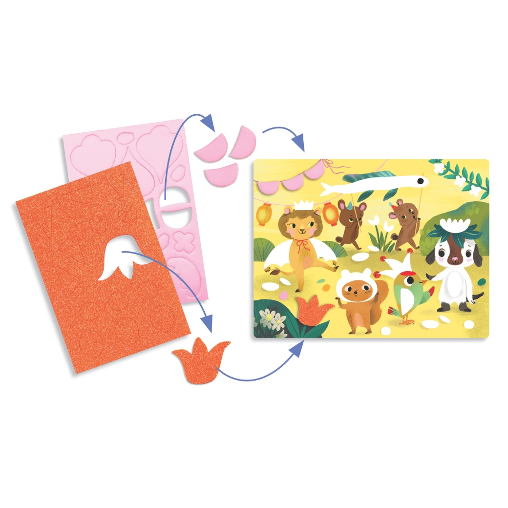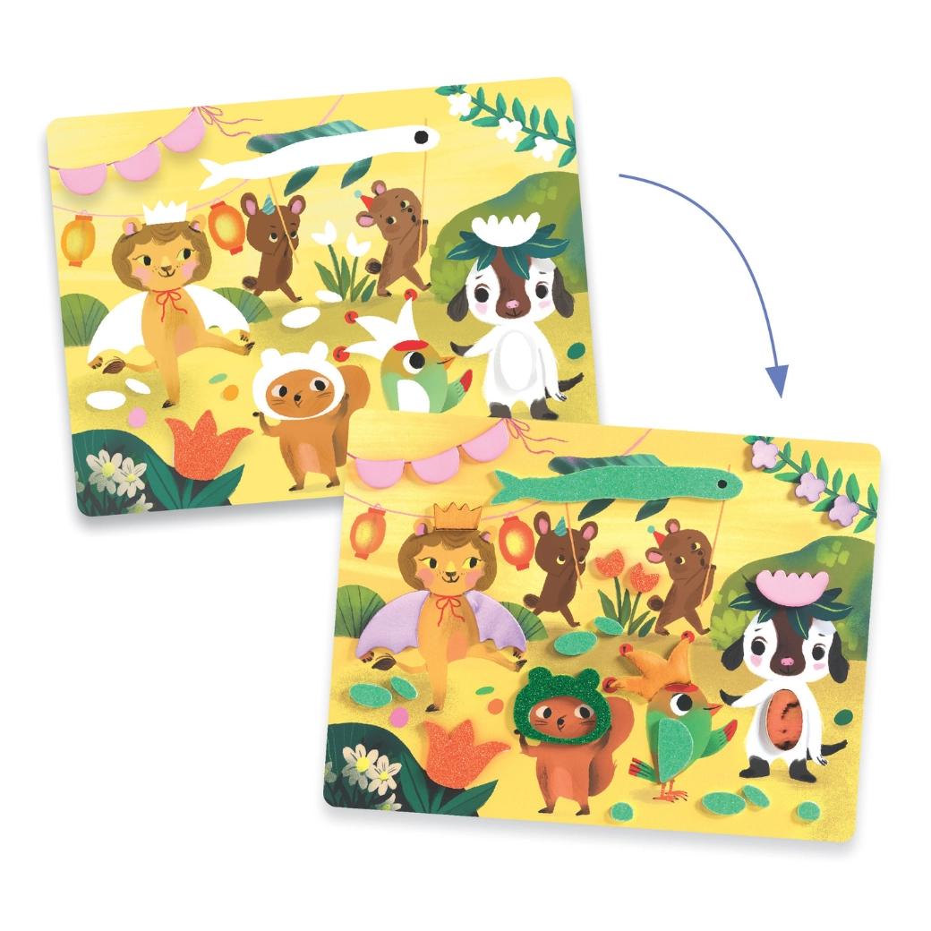 Az öntapadós, fényes felületű habformáknak köszönhetően a gyerekek könnyedén alkothatnak ragyogó műveket ünneplő állatos motívumokkal. Nincs rendetlenség, csak lehúz és felragaszt.