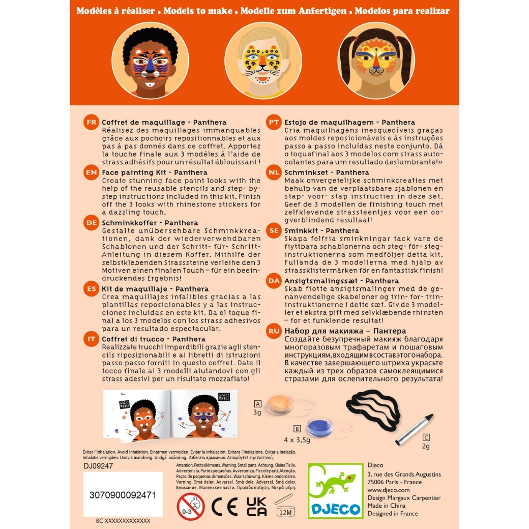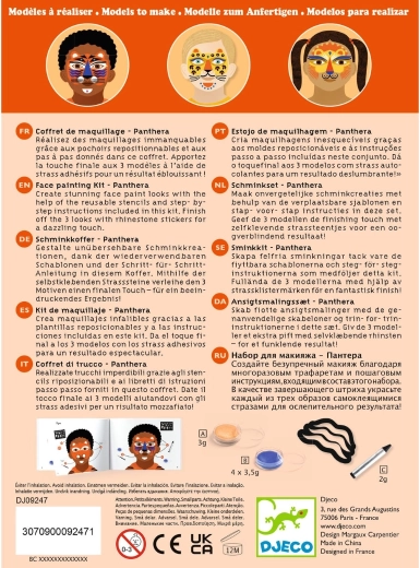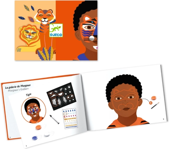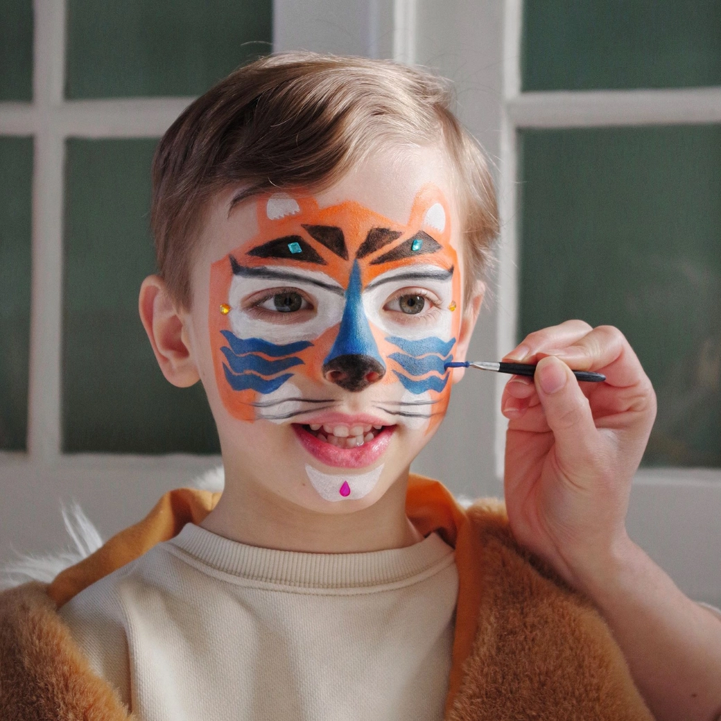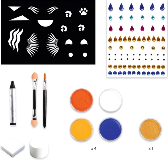 Ez a kreatív arcfestő készlet mindent tartalmaz, amire szükség van látványos állatminták elkészítéséhez. A gondosan válogatott színeknek – narancs, fehér, sárga, kék és arany – köszönhetően könnyedén varázsolhatsz hatásos csíkokat, foltokat és csillogó részleteket. A mellékelt sablonok és az öntapadós kövecskék professzionális megjelenést adnak a sminknek.