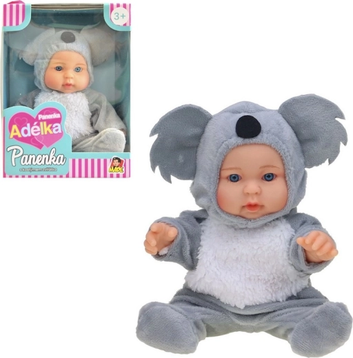 A bájos, koala jelmezes baba örömöt szerez minden kis gondoskodónak. Kompakt, 22,5 cm-es méretű, tartós vinilből készült, és ideális a mindennapi játékhoz. Pihe-puha, aranyos öltözet, vinil testecske és biztonságos kialakítás 3 éves kortól – tökéletes ajándék.