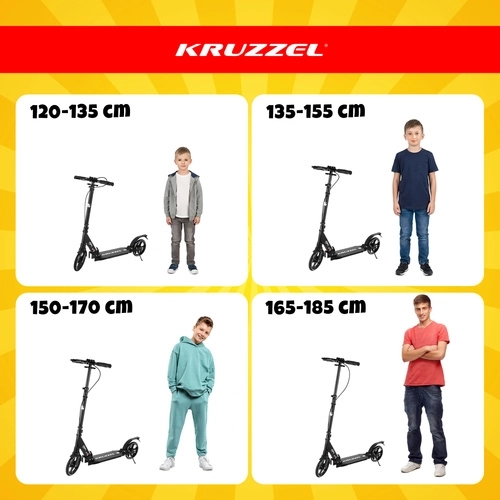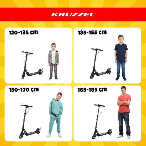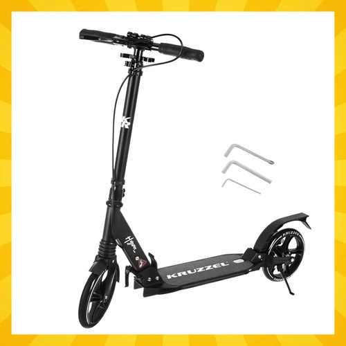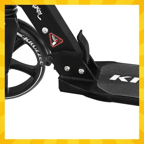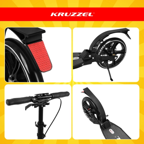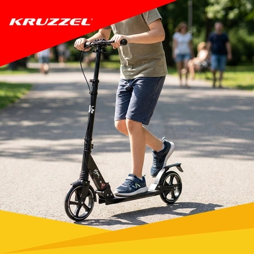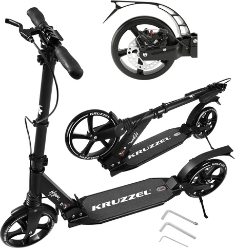 A könnyű és tartós KRUZZEL Hyperion roller városba és kerékpárutakra egyaránt ideális: nagy, 200 mm-es gumigumikat, sima ABEC-9 csapágyakat és kettős fékrendszert (kézi tárcsafék + lábfék) kombinál. A gyors összecsukásnak, a 4 fokozatban állítható kormánymagasságnak és az amortizációnak köszönhetően kényelmet, biztonságot és mobilitást kínál 10 éves kortól felnőtteknek is.