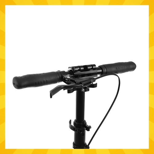 A biztonságos irányítást a kettős fékrendszer biztosítja: kézi tárcsafék és hátsó lábfék a sárvédőben. A kormány négylépcsős magasságállítása (84 / 93 / 98 / 103 cm) lehetővé teszi a gyermekekhez és felnőttekhez igazítást. A csúszásgátló deck és a puha markolatok minden helyzetben stabilitást nyújtanak, a kitámasztó pedig megkönnyíti a leállítást.