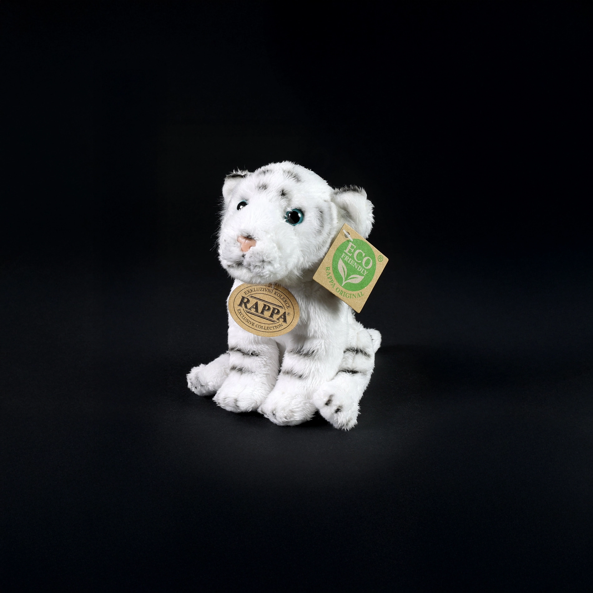 Aranyos, fehér színű plüss tigris 15 cm-es magassággal, amely örömet szerez gyermekeknek és gyűjtőknek egyaránt. Minőségi, tapintásra puha anyagokból készült, és a kézi megmunkálásnak köszönhetően élethű hatást kelt. A újrahasznosított anyagokból (PET palackok) készült töltet valóban környezetbarát játékot eredményez, amely újszülöttek számára is biztonságos.