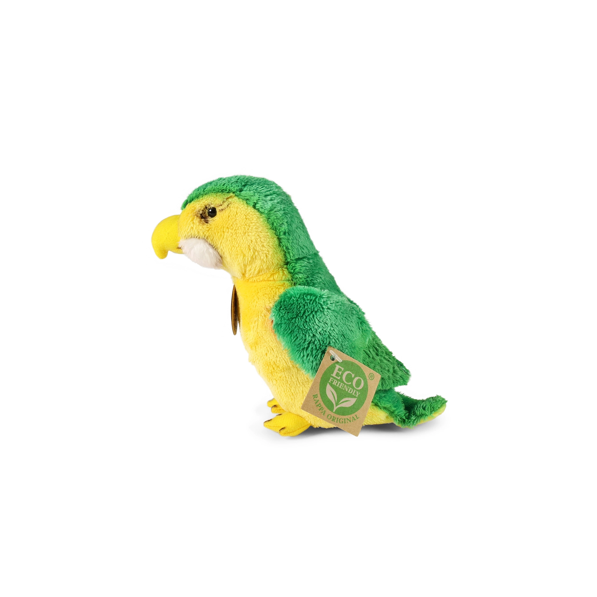 A RAPPA exkluzív kollekciójából származó, 15 cm magas, aranyos zöld plüss papagáj örömet szerez kicsiknek és nagyoknak egyaránt. A kézi megmunkálásnak köszönhetően élethű hatást kelt, és legmagasabb minőségű anyagokból készül. A újrahasznosított PET palackokból származó töltet születéstől kezdve biztonságos, és kíméli a természetet.