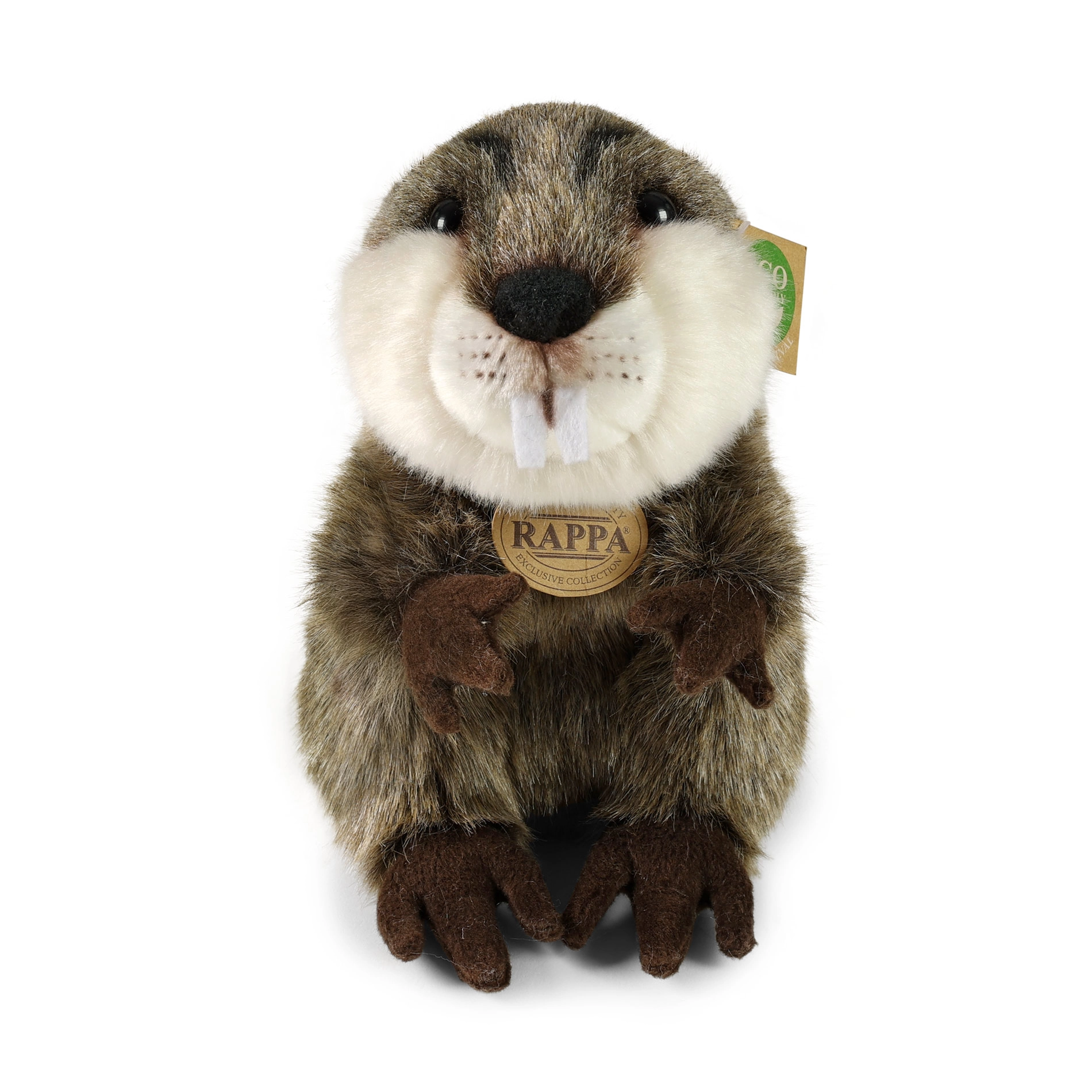 Aranyos, 25 cm-es plüss hód a RAPPA exkluzív kollekciójából, puha anyagból és kézi kidolgozással a valósághű megjelenésért. A környezetbarát, újrahasznosított PET-palackokból készült töltetnek köszönhetően kíméletes a természethez, és már újszülöttek számára is biztonságos a születéstől kezdve.