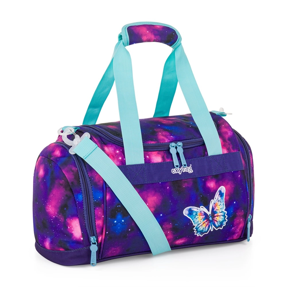 Könnyű és praktikus sporttáska pillangó mintával kis sportolóknak. Kínál külön cipőtartó zsebet, két oldalsó zsebet apróságoknak és tágas főrekeszt. A állítható vállpántnak köszönhetően a gyerekek kényelmesen vihetik vállon vagy kézben. Remek választás focihoz, tornához és más szakkörökhöz.