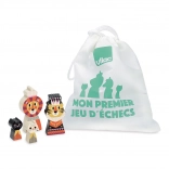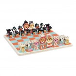 Fa sakk állatmintákkal ideális gyerekeknek, akik a sakkot tanulják. Színes és nagy figurák vonzzák a figyelmet és támogatják a képzeletet.